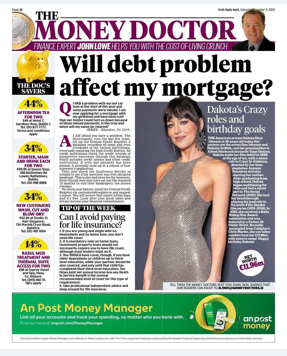 A. I am afraid Jerry you do have a problem. The government over the last few years set up the www.CentralCreditRegister.ie a database recording all loans and even overdrafts of the various institutions eventually replacing the Irish Credit Bureau. All credit institutions check the credit records of prospective borrowers through this database – includes credit unions, other credit institutions – and if even one payment has been missed, it generally ends up in a decline for that borrower’s application. They also check the Insolvency Service of Ireland (www.isi.gov.ie) to see if the borrower was ever declared a bankrupt. This is also bad news for the borrower even though they may have sat out the required 12 months to end their bankruptcy – the record however remains. If you need to check your history send an email to the Central Credit Register via their website and request a report. You will receive that report within days – it’s free too. Look after your good name and always honour your financial commitments.